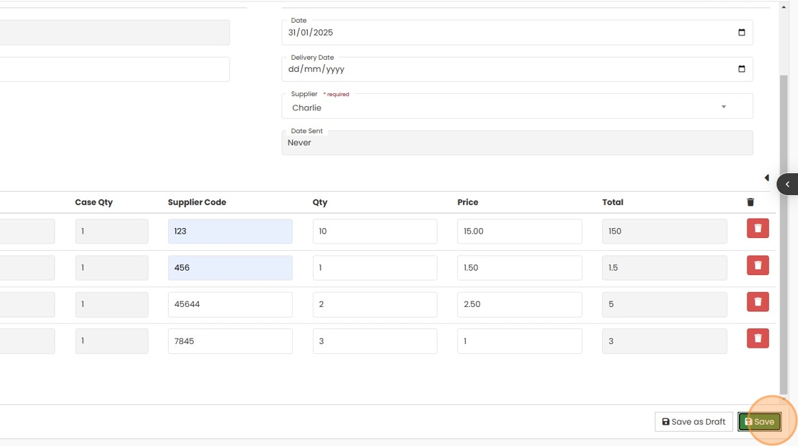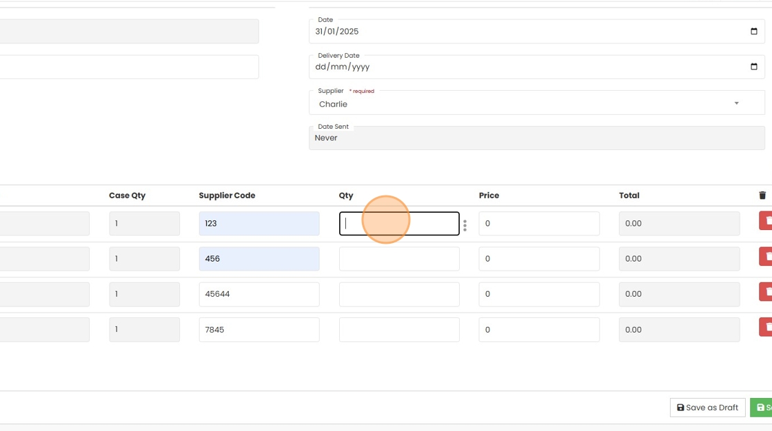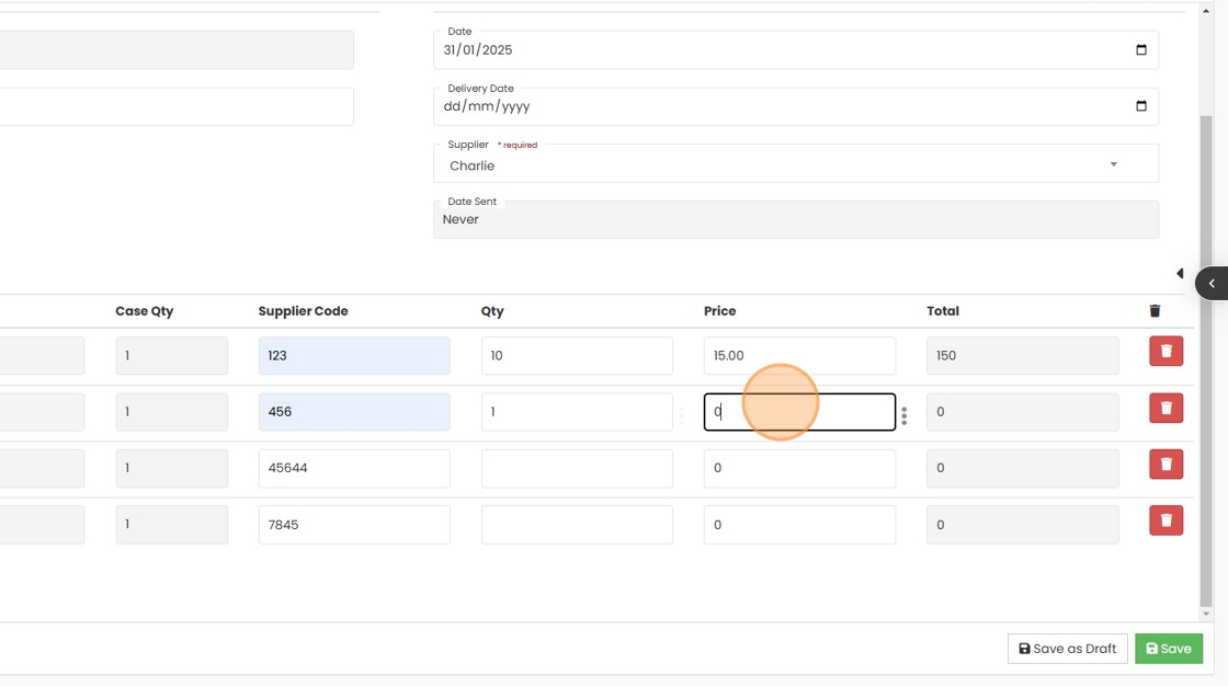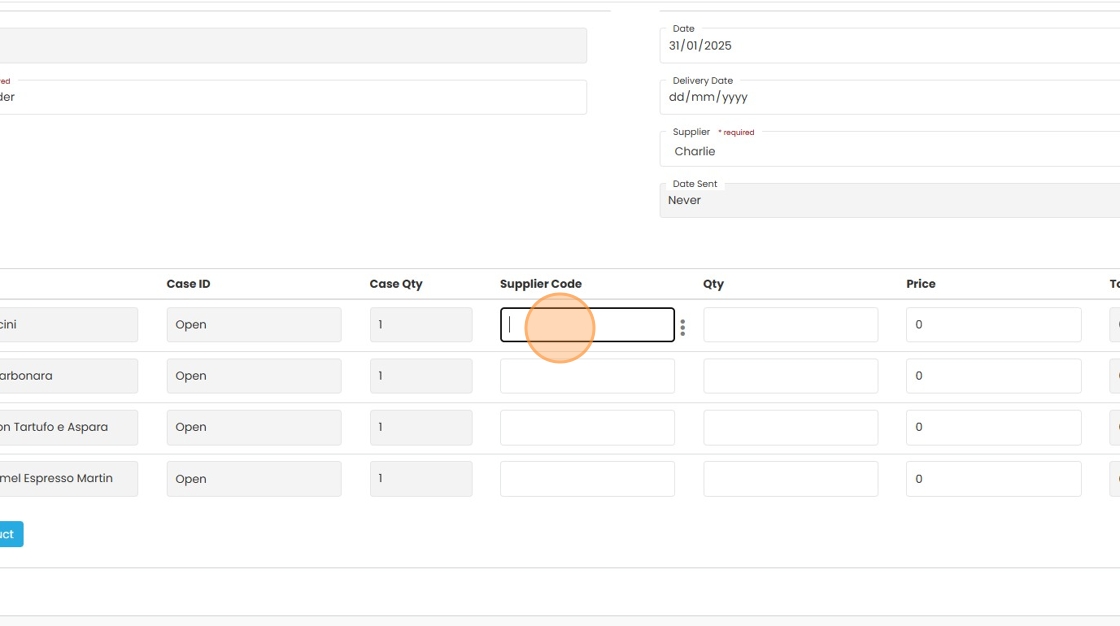 8. Enter the Supplier Code for the item if not auto populated