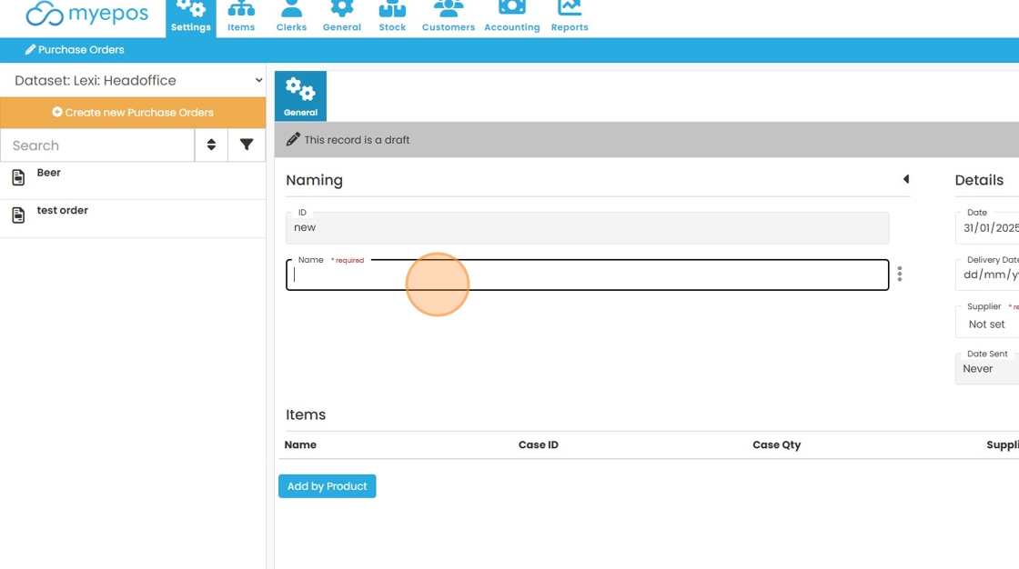Creating a Purchase Order in myEPOS Cloud