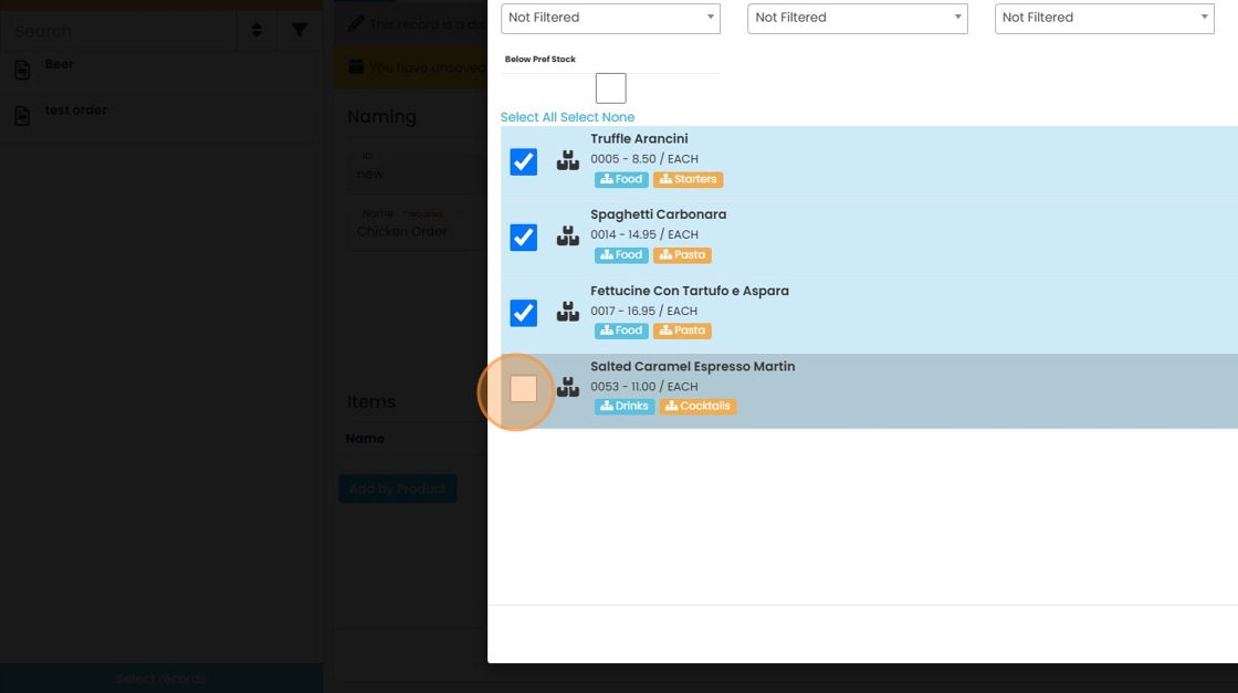 6. Search for and select the products you wish to order