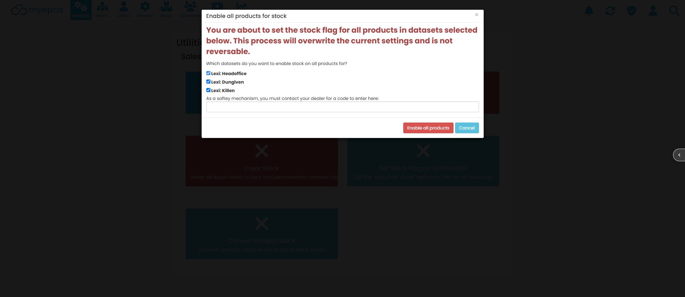 2. Click “Set Stock Flag on All ProductsSet the “calculate stock” option to “yes” on all products”