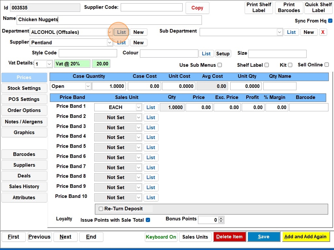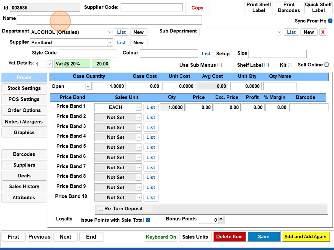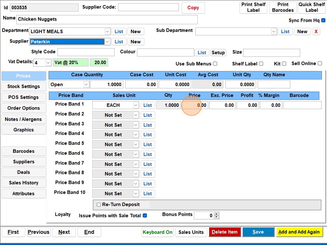 7. Click the “Price” field and enter the price for the item