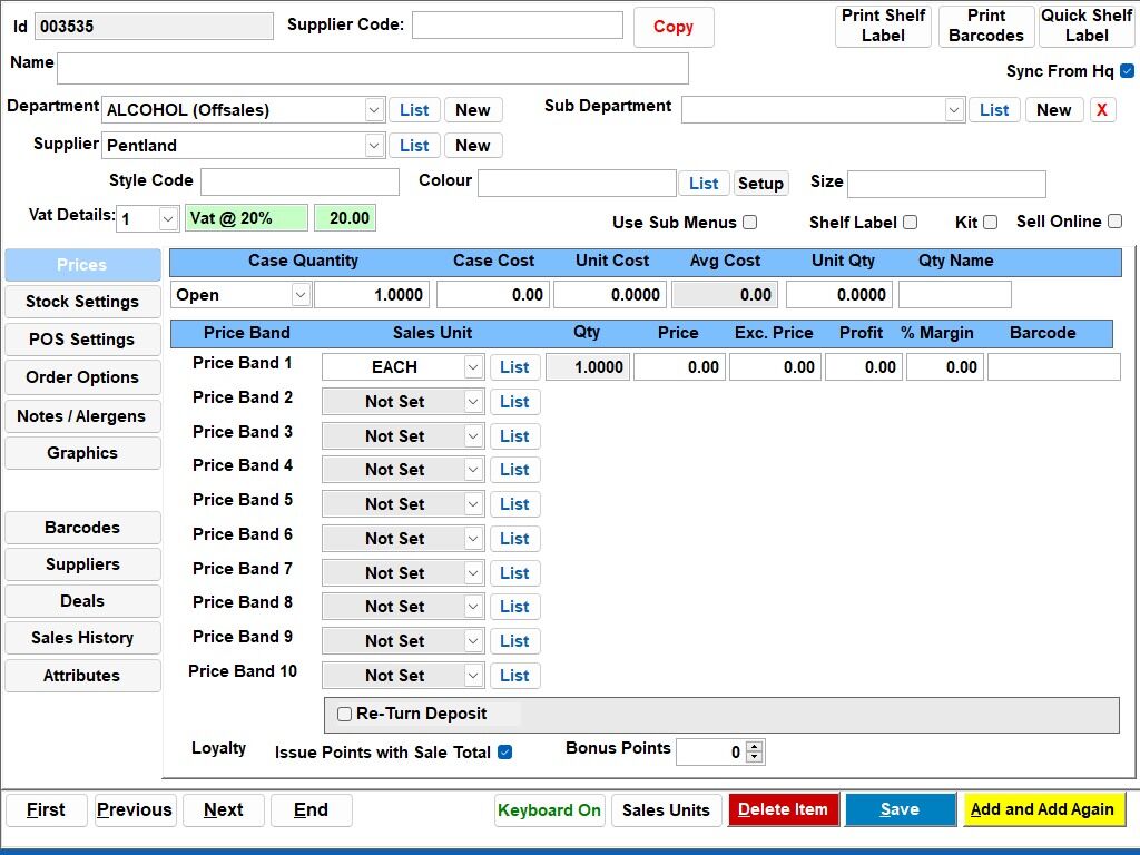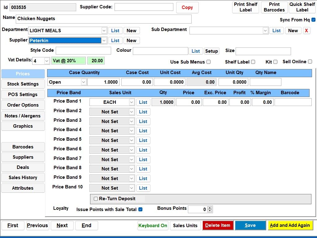 7. Click the “Price” field and enter the price for the item