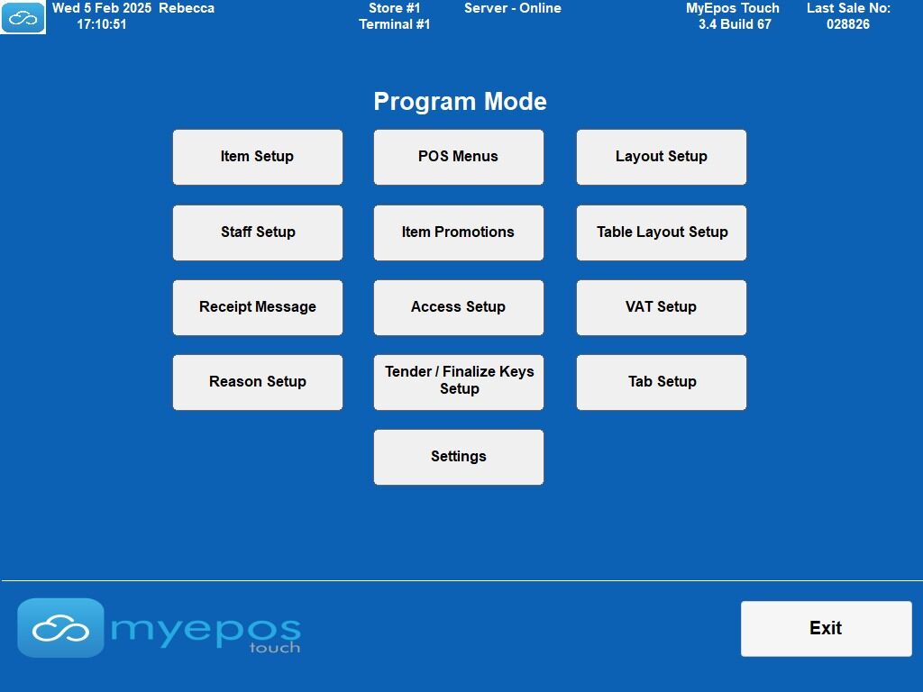 1. In program mode choose “Item Setup”