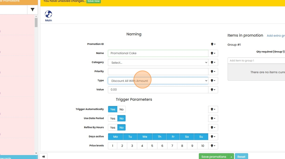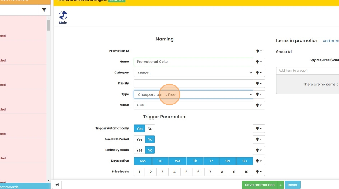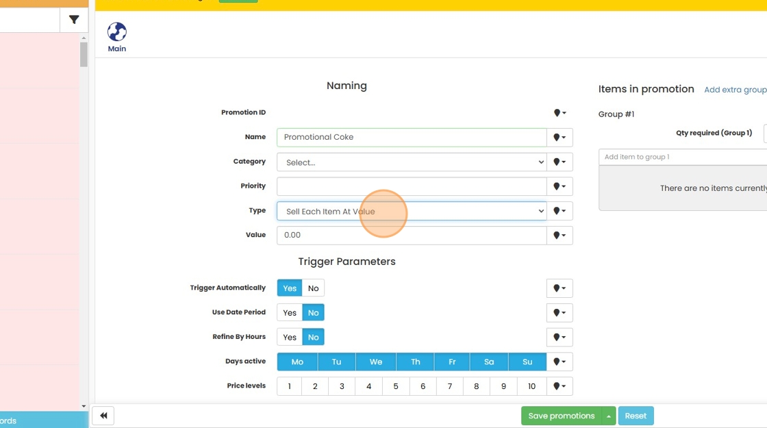 14. Click the “Value” field for this promotion the value is the discount percentage you wish to give on the cheapest item sold under this promotion.