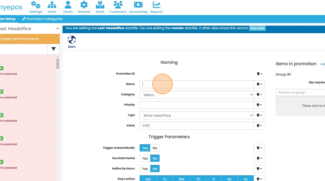 12. Click the “Value” field for this promotion the value is the discount percentage you wish to give on all items sold under this promotion.