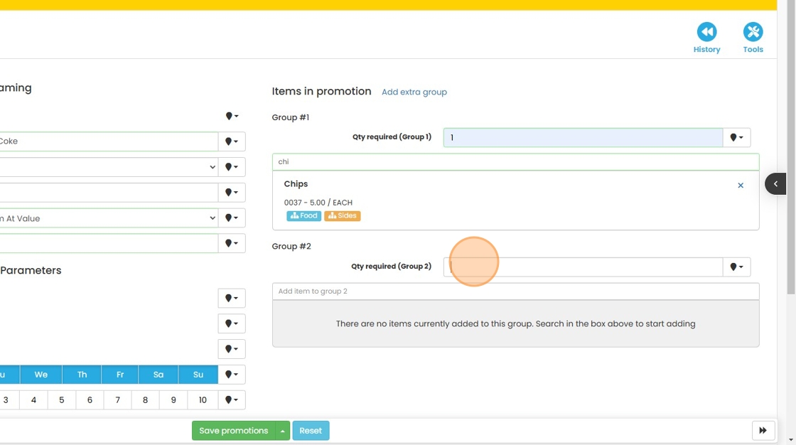 36. Add the relevant items for the promotion in the “Add item to group 2” field.