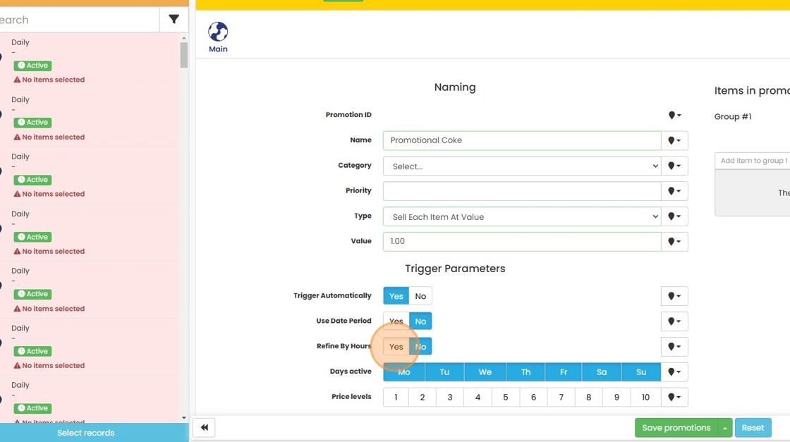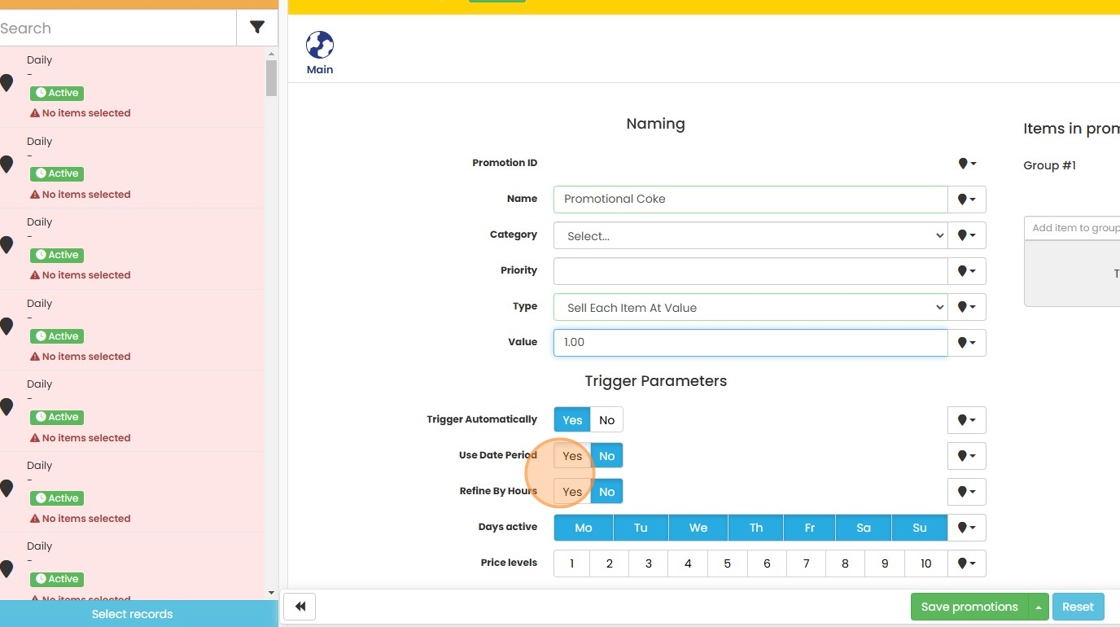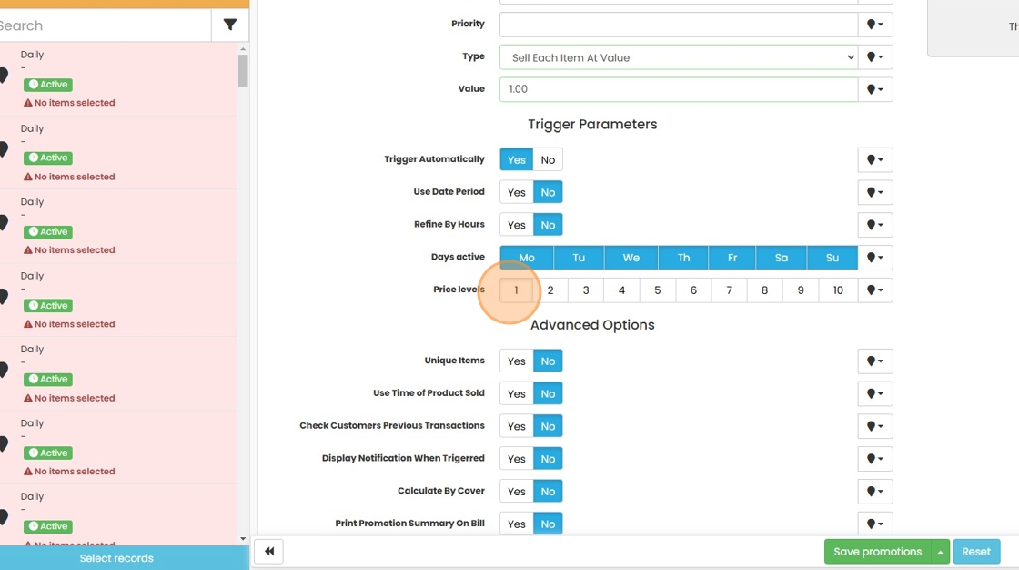 20. Click the “Value” field for this promotion the value is the sell price for items in this promotion.