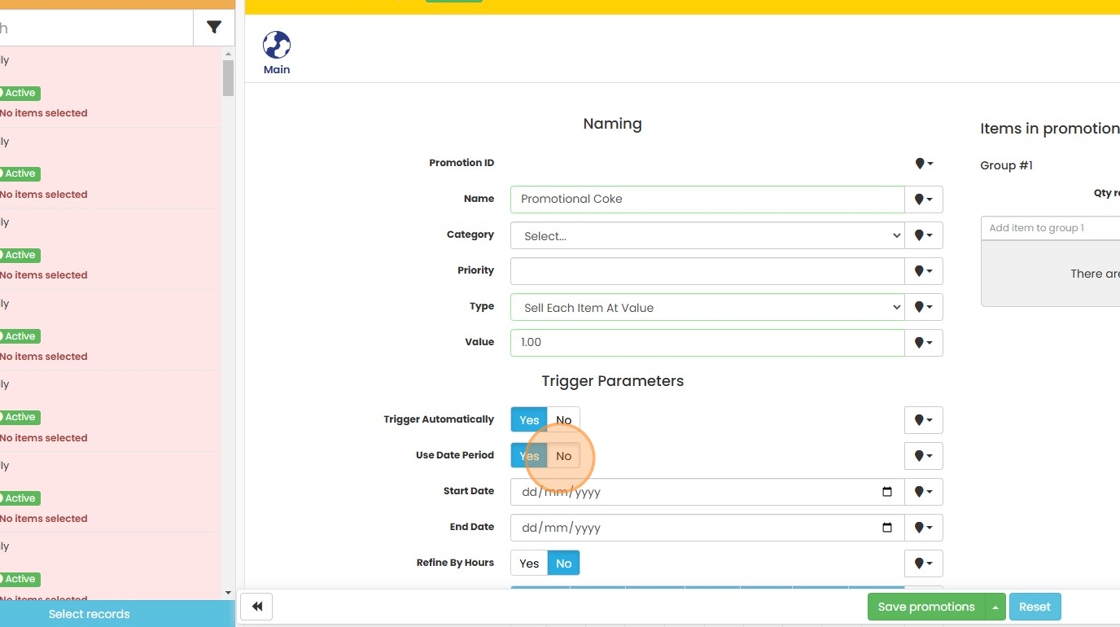 27. Choose whether the promotion should take into account the time the items were sold vs. paid for.